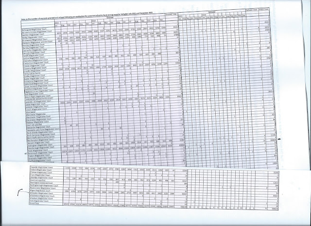 Regular readers might have noticed that there are two topics which appear to have more than their fair share of space of late in my weekly outpourings: the Single Justice Procedure and warrants of entry for utility companies. The latter particularly is of personal interest because the criticisms beginning to arise to a wider audience inside and outside parliament have been apparent since I first sat as a winger in 1998. The arrogance of various chairmen now known as presiding justices in passing a heavy bundle of documents towards me with instructions to sign and the encouragement of clerks now known as legal advisors to "press on" was against my very nature of inquiry and fair play. However after some years research and persuasion with the assistance of a legal advisor whose ideas of justice were akin to my own my bench adopted the Best Practice Guidance as posted here 27th May 2015. It appears that this example was not followed elsewhere. Indeed like so many cover ups by supervisory authorities in this country, whether of errant police officers, bullying health authorities or childcare organisations to name but a few, the MOJ tolerated and in fact encouraged this practice of nodding through warrants of entry to cut power or installing of PAYG meters to those who could least afford the extortionate charges to feed those meters. The iniquity of this policy can be seen in the table below. The anomaly of the numbers refused in 2019 cf 2020 and beyond certainly points to a directive from on high to change whatever policy was previously operating. In all probability from my own experiences this was likely to have been pressure from the gas and electricity supply industries and their bailiffs.